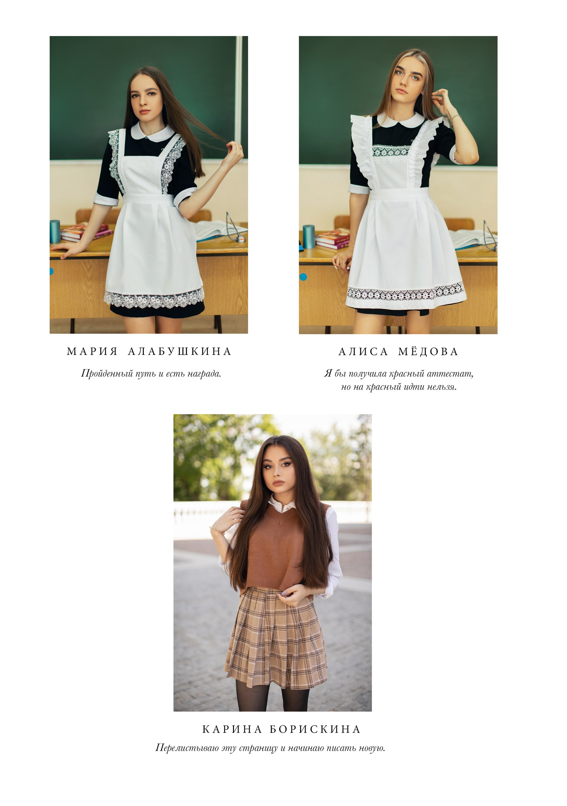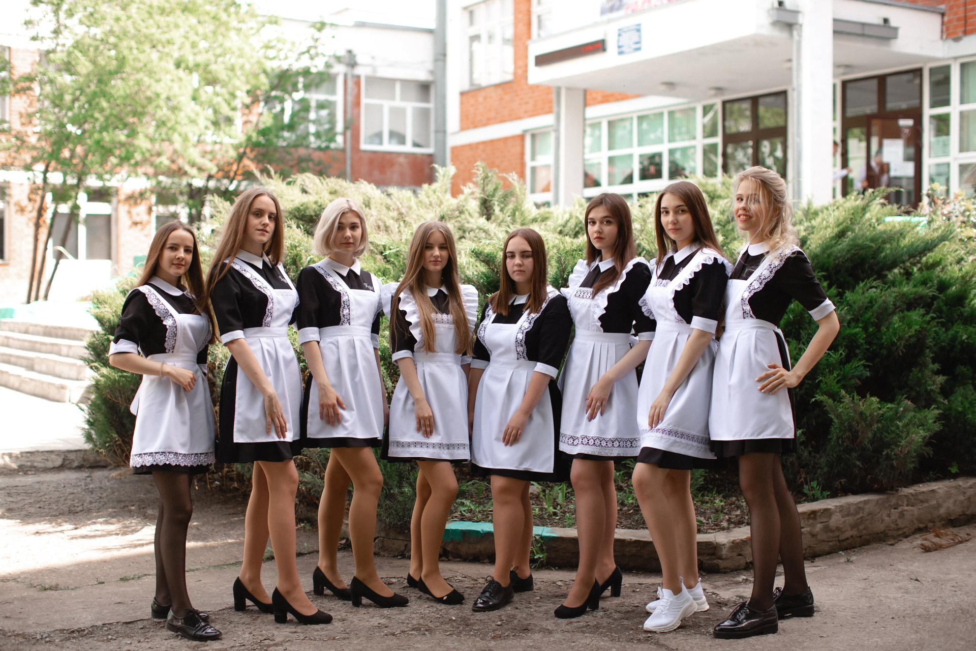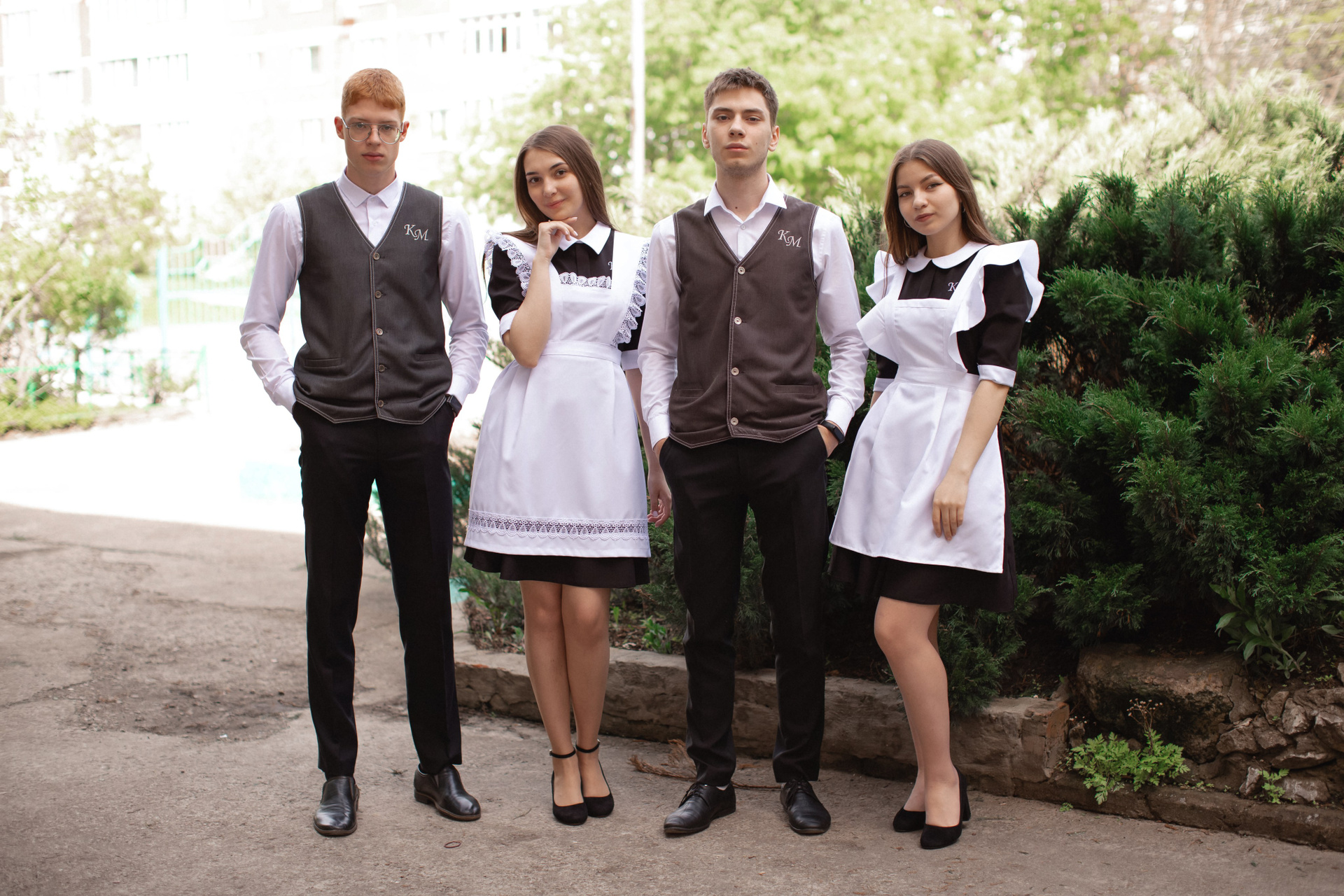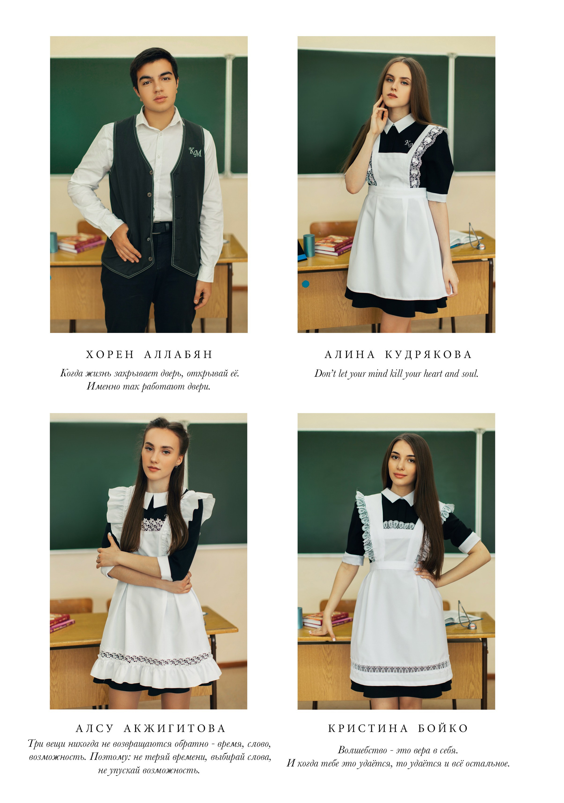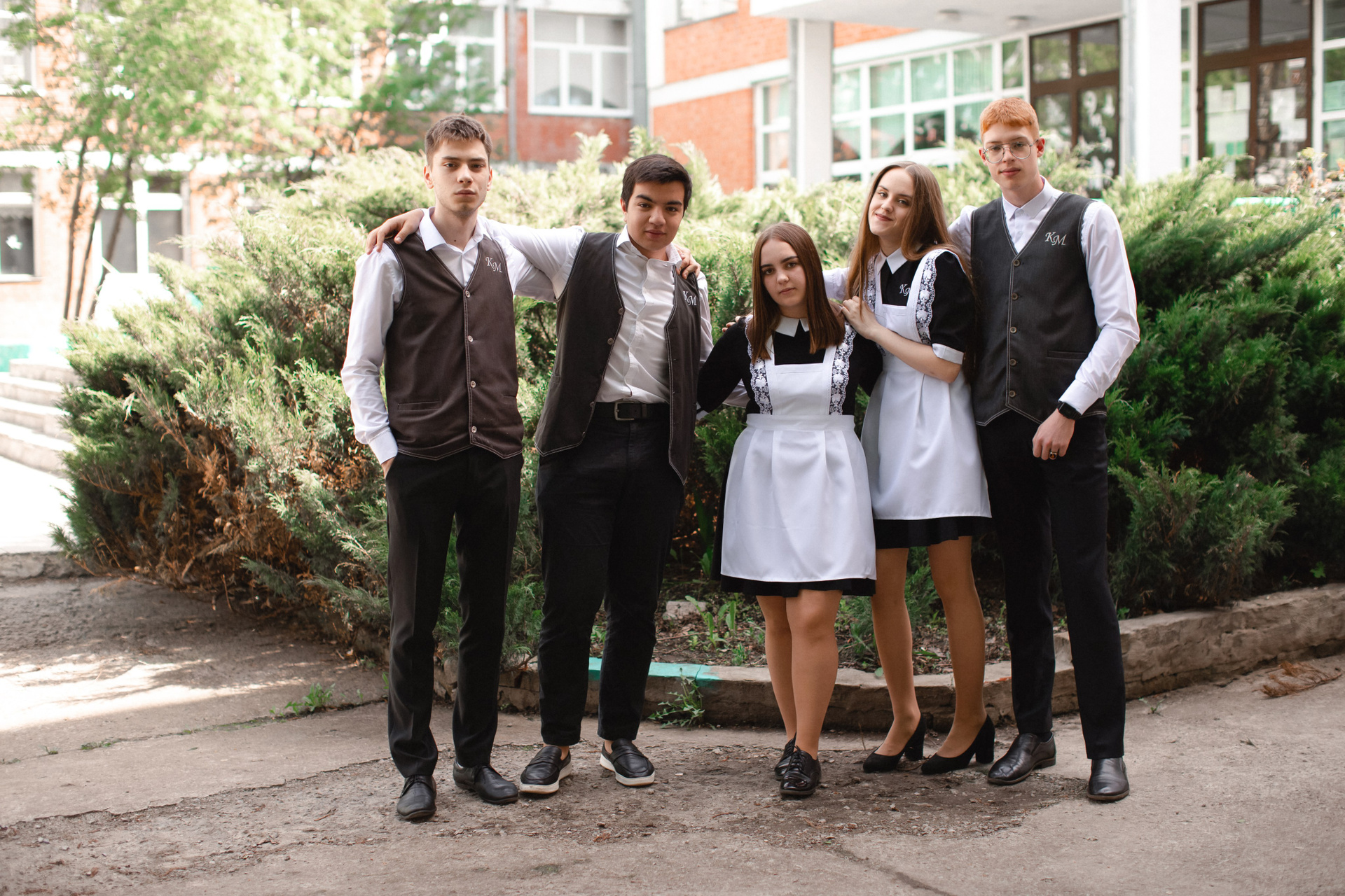 В школьной форме в школе / библиотеке / В свободной форме в парке / на стадионе
