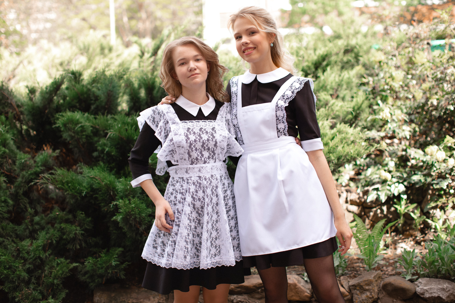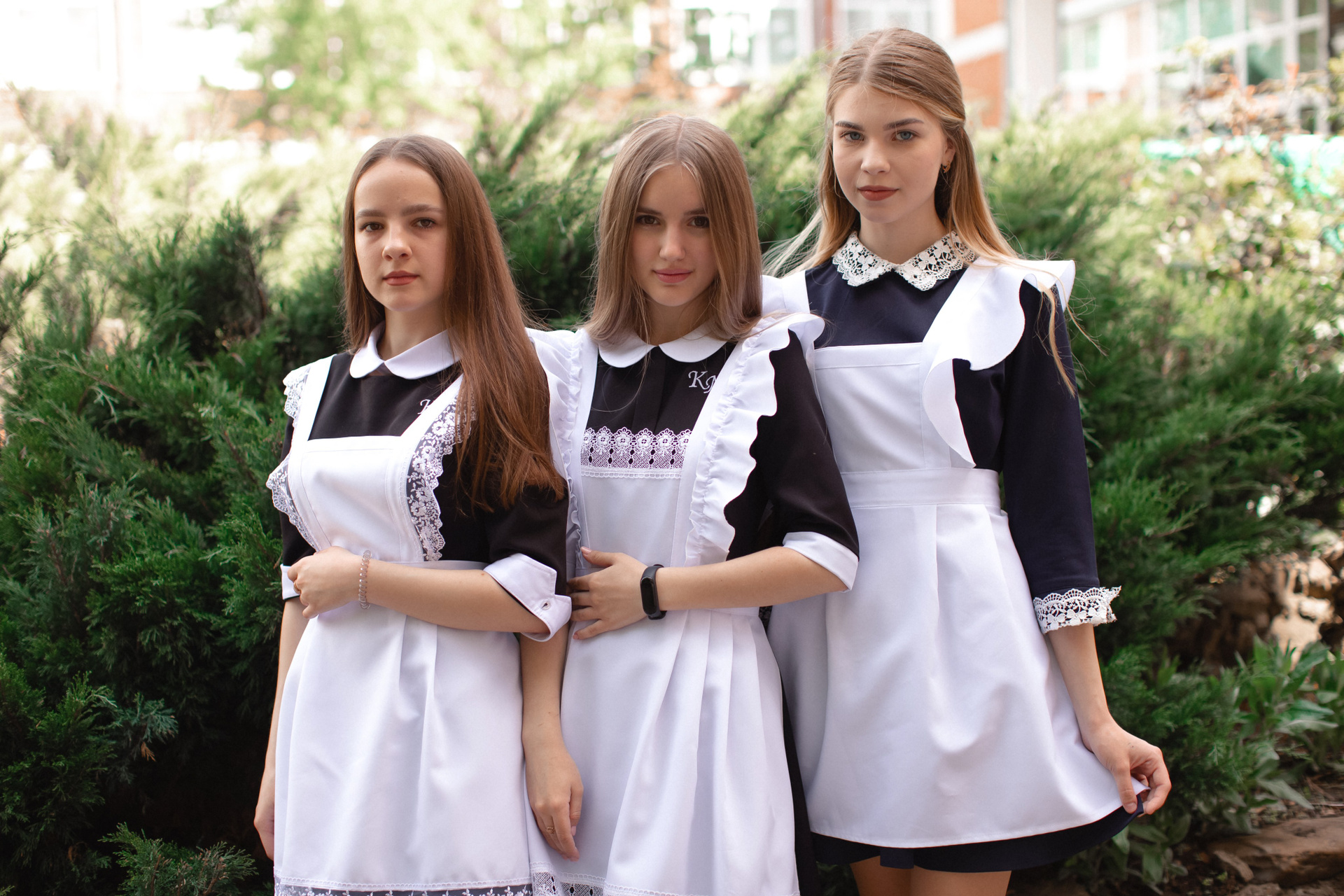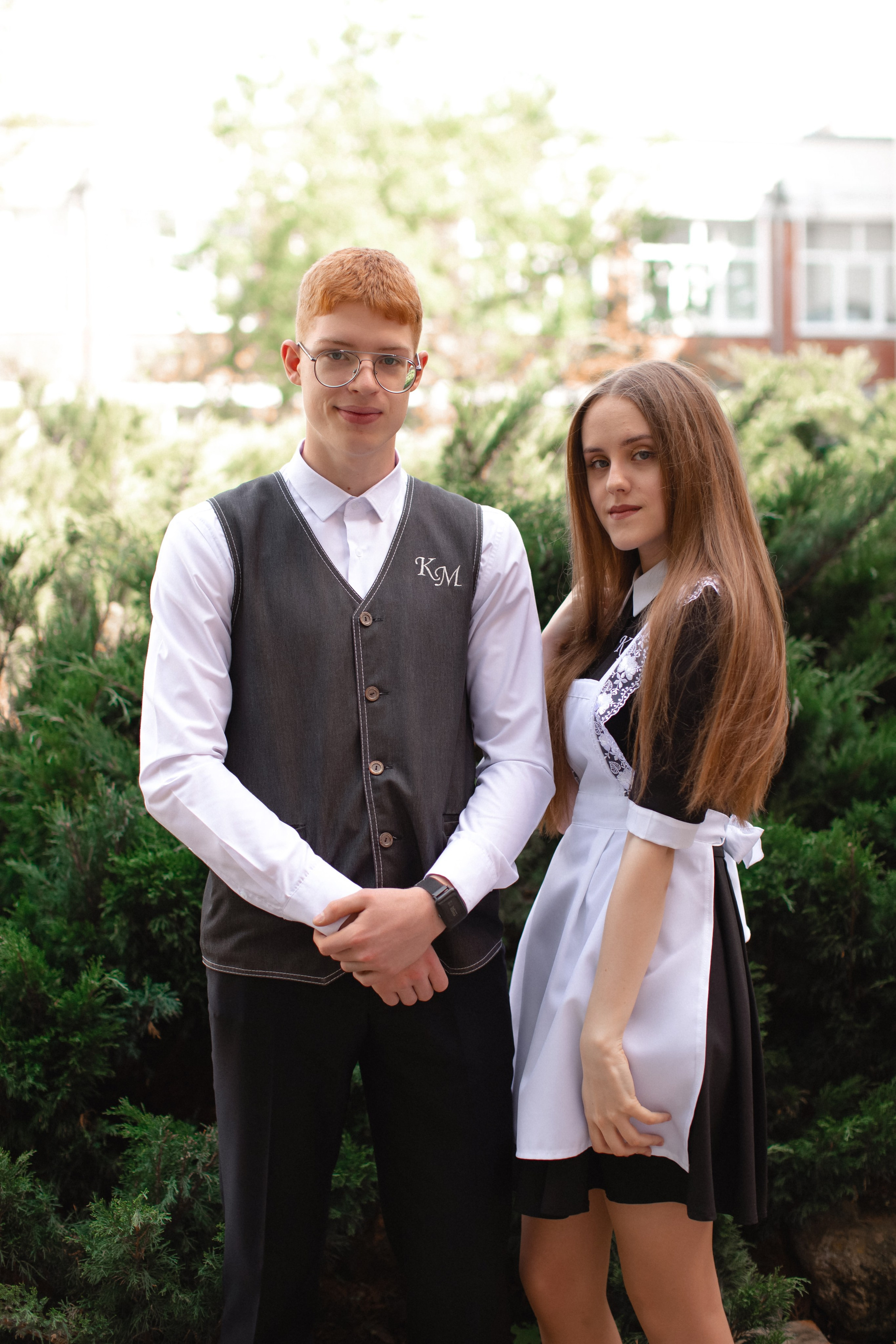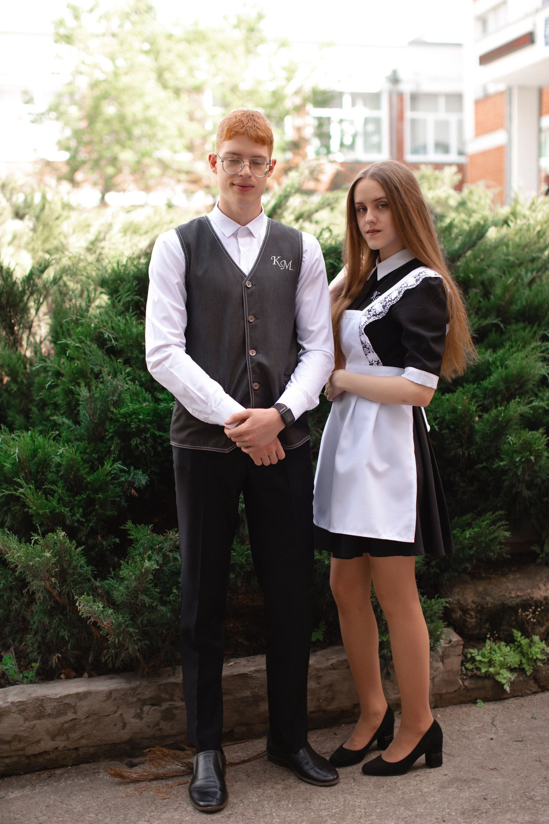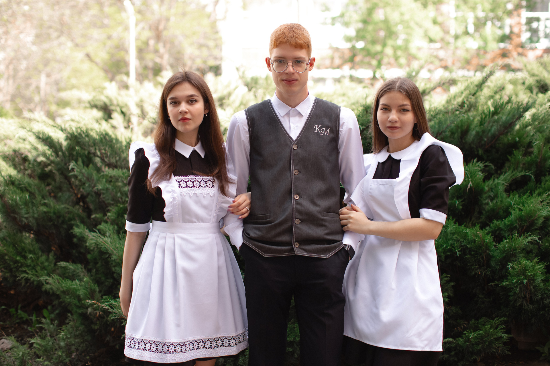 В школьной форме в школе / библиотеке / В свободной форме в парке / на стадионе