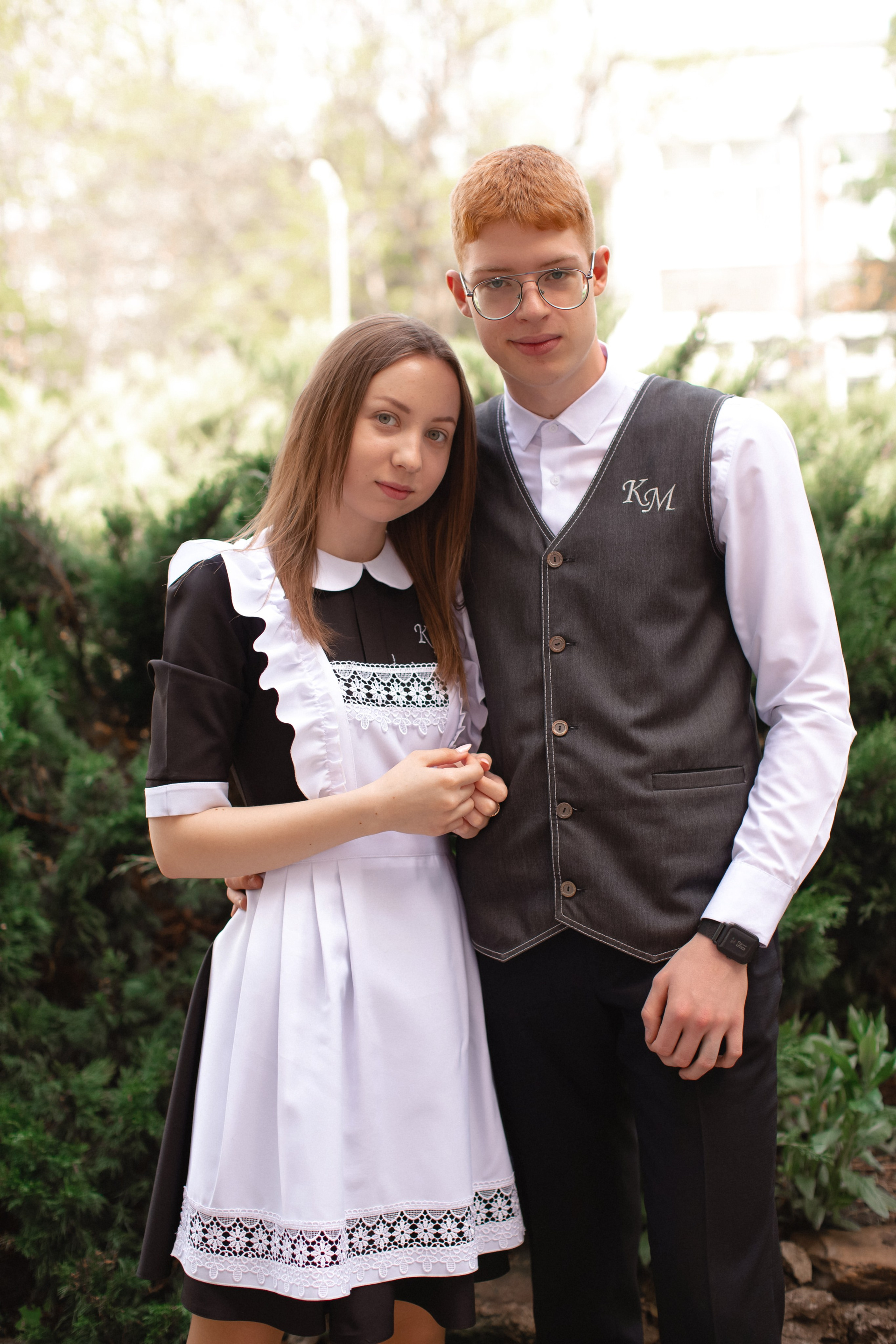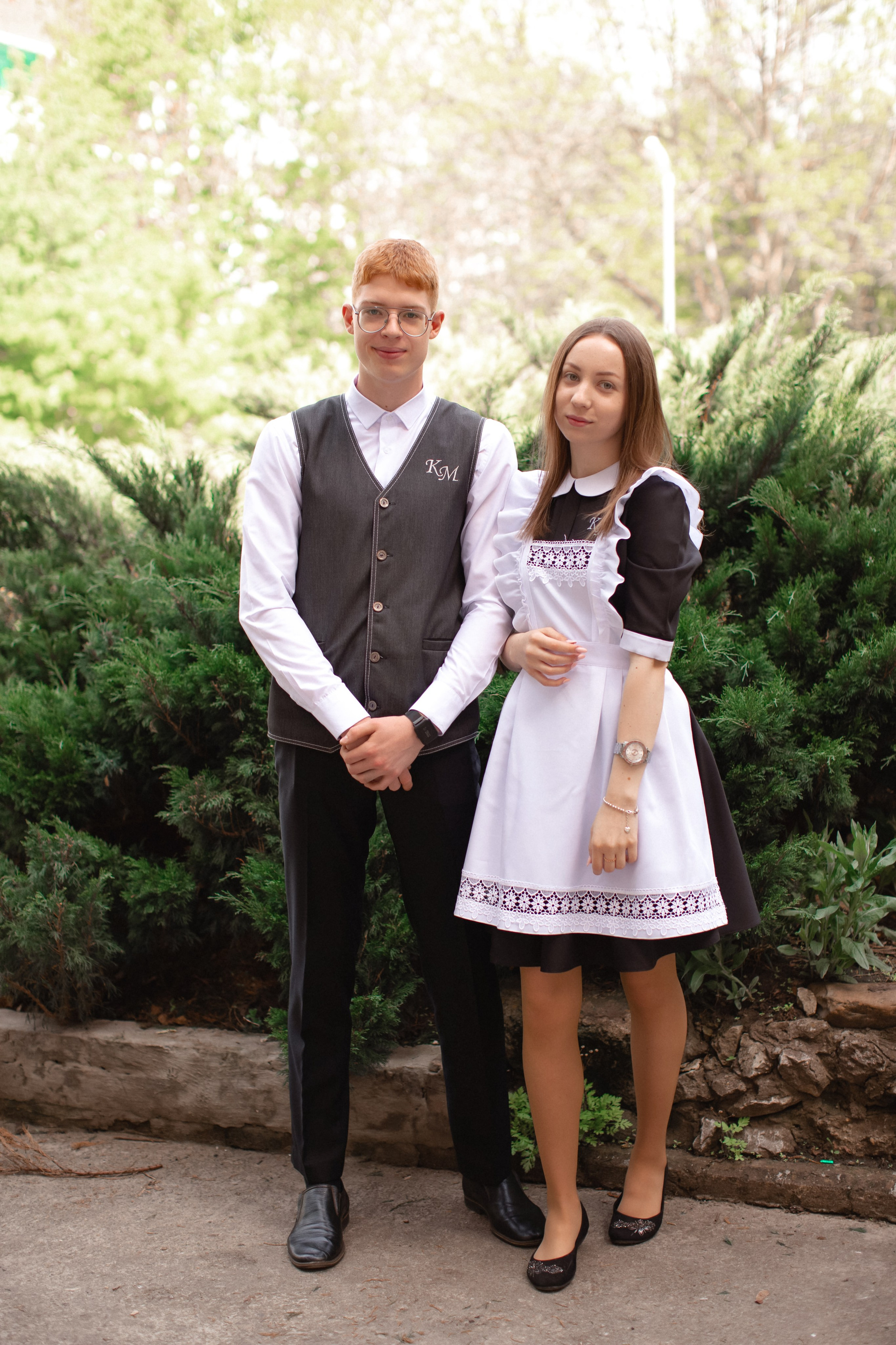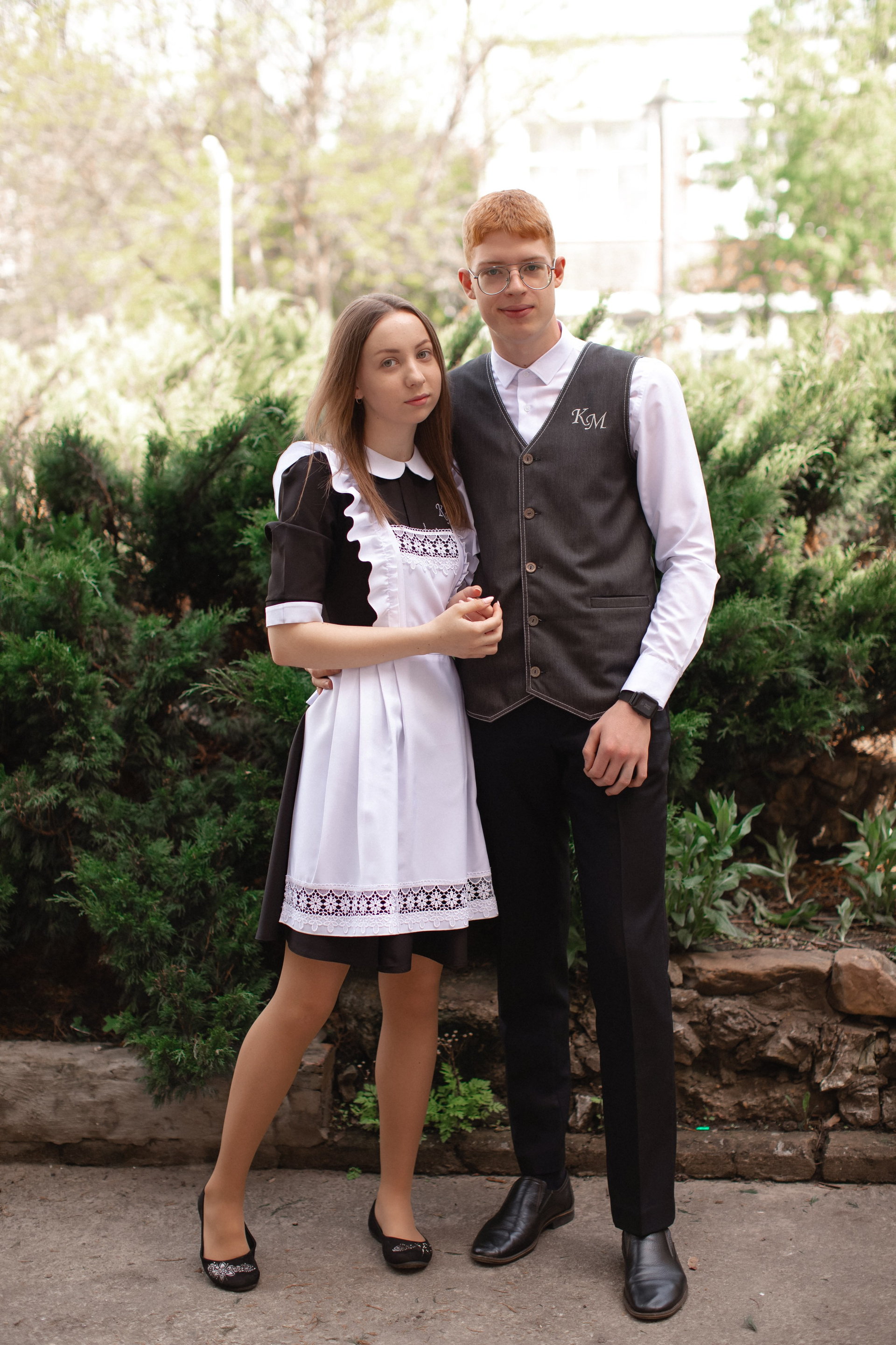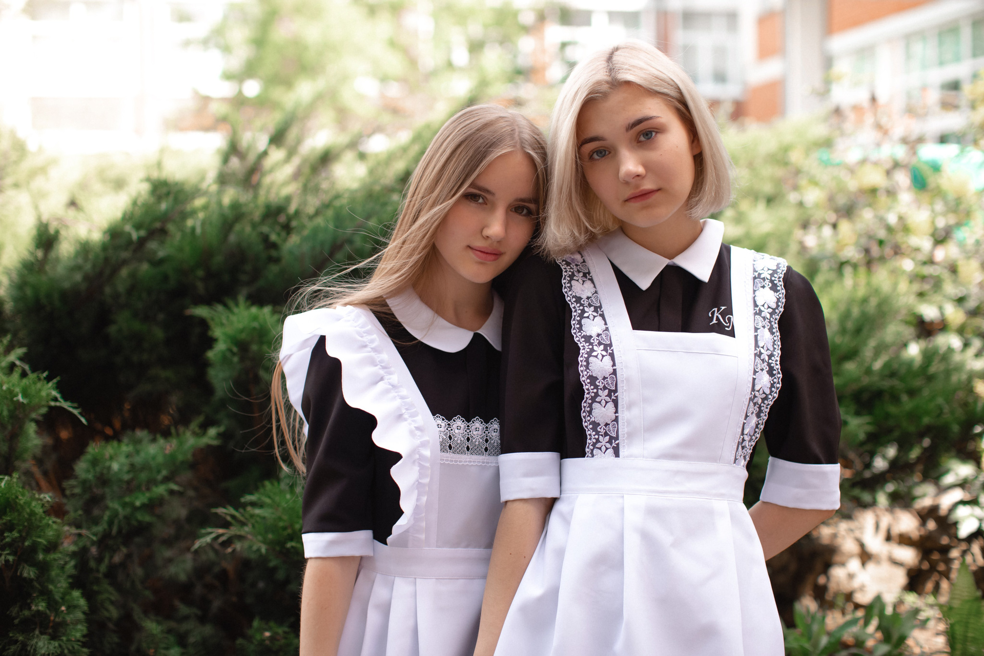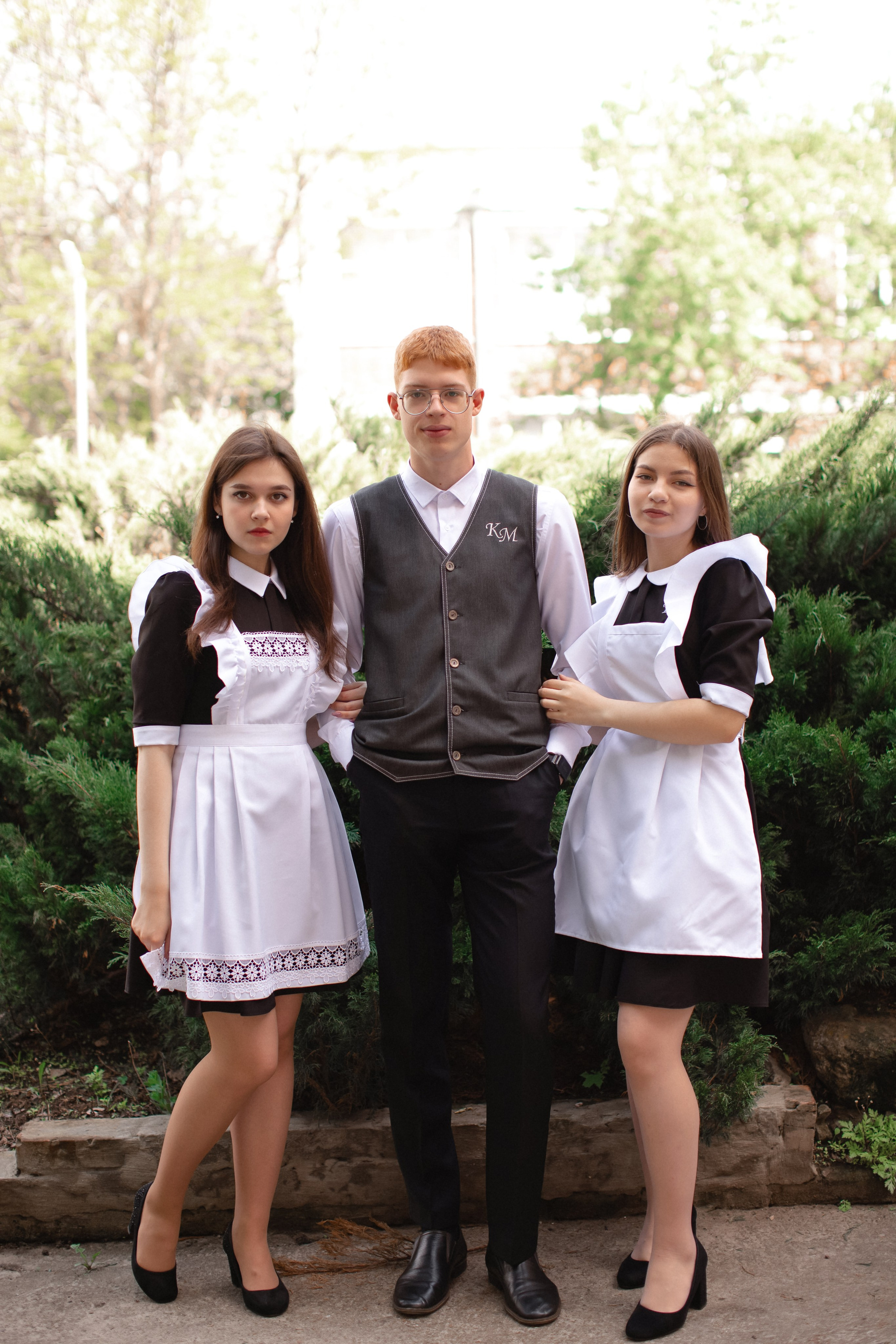 В школьной форме в школе / библиотеке / В свободной форме в парке / на стадионе
