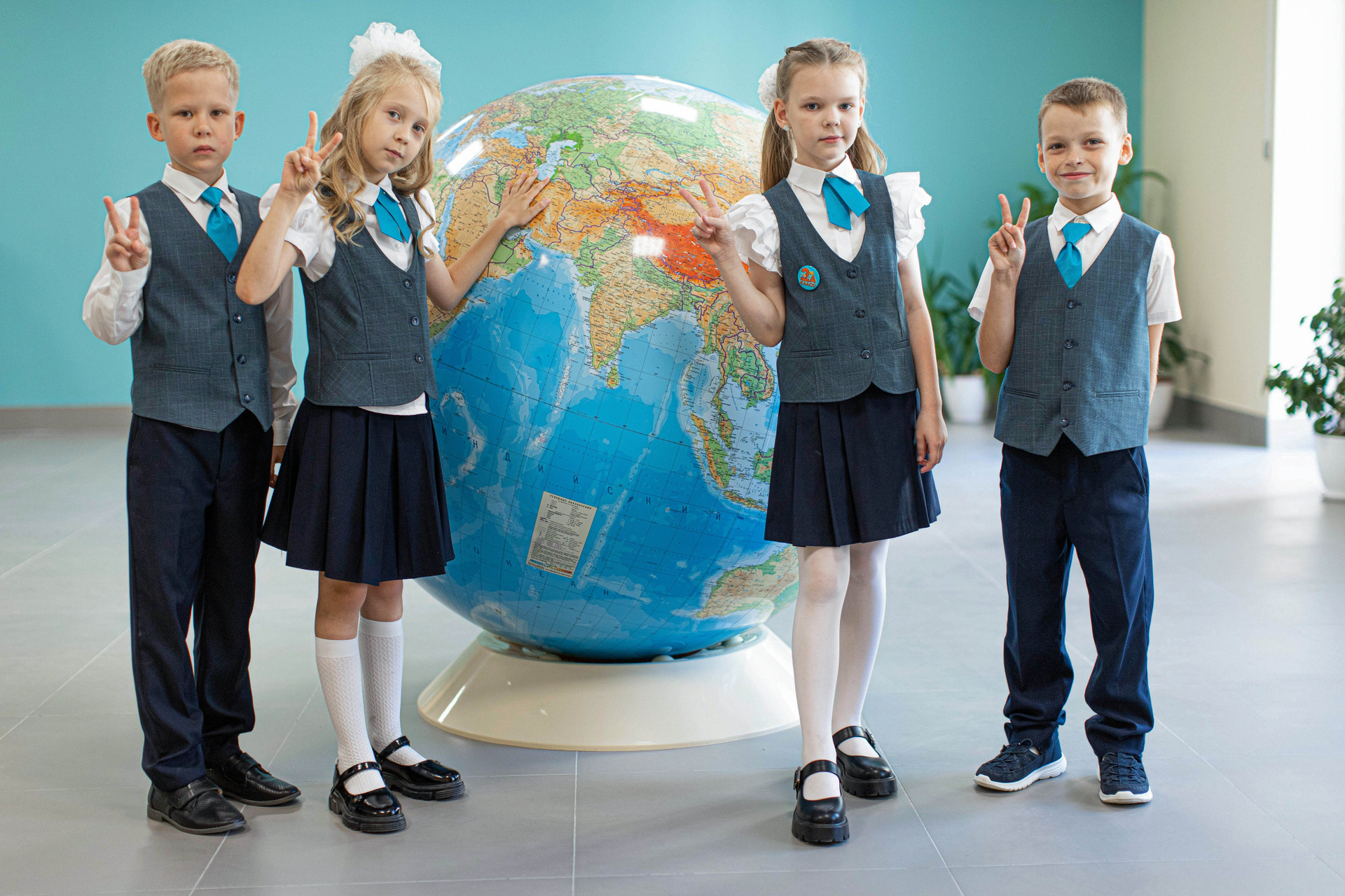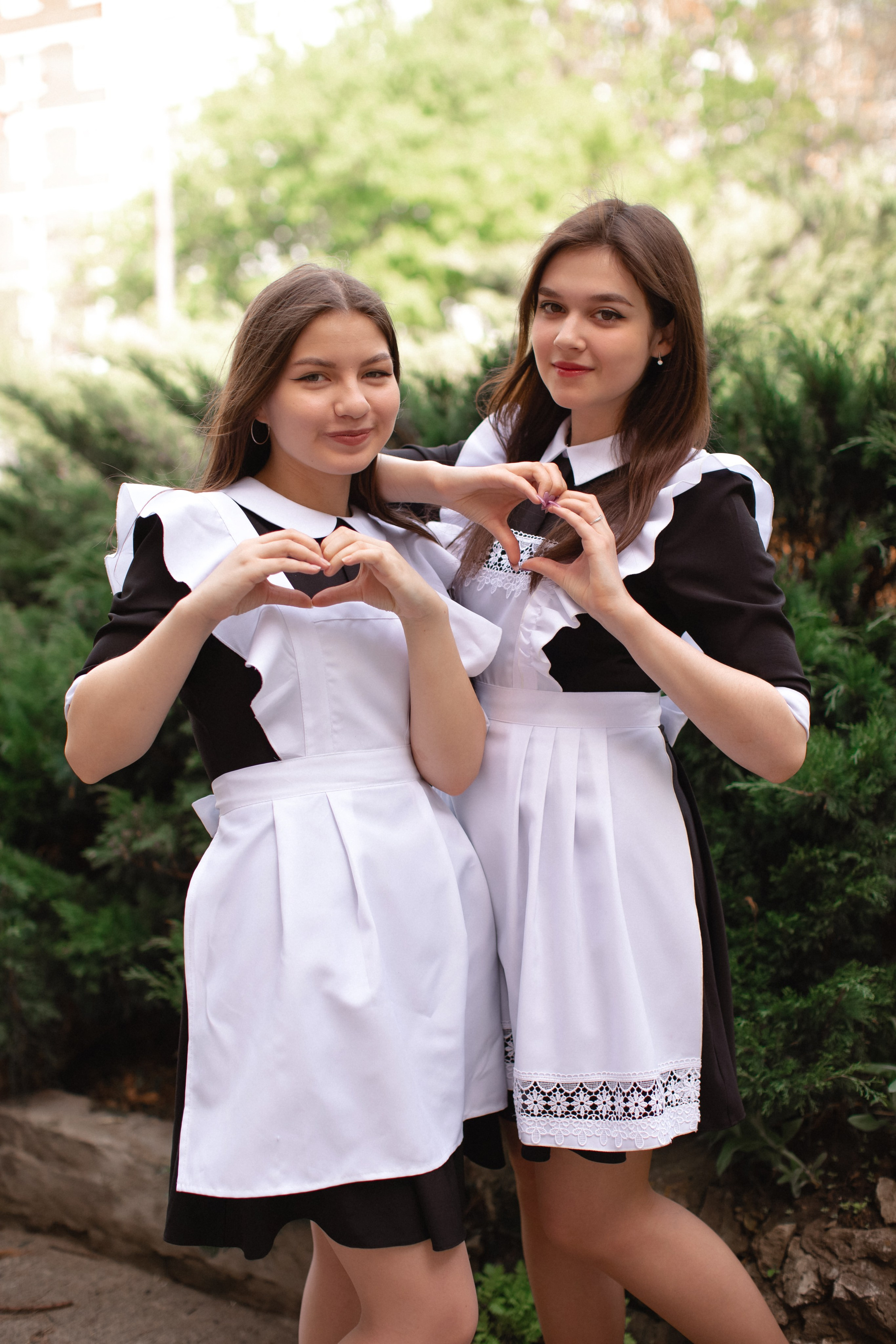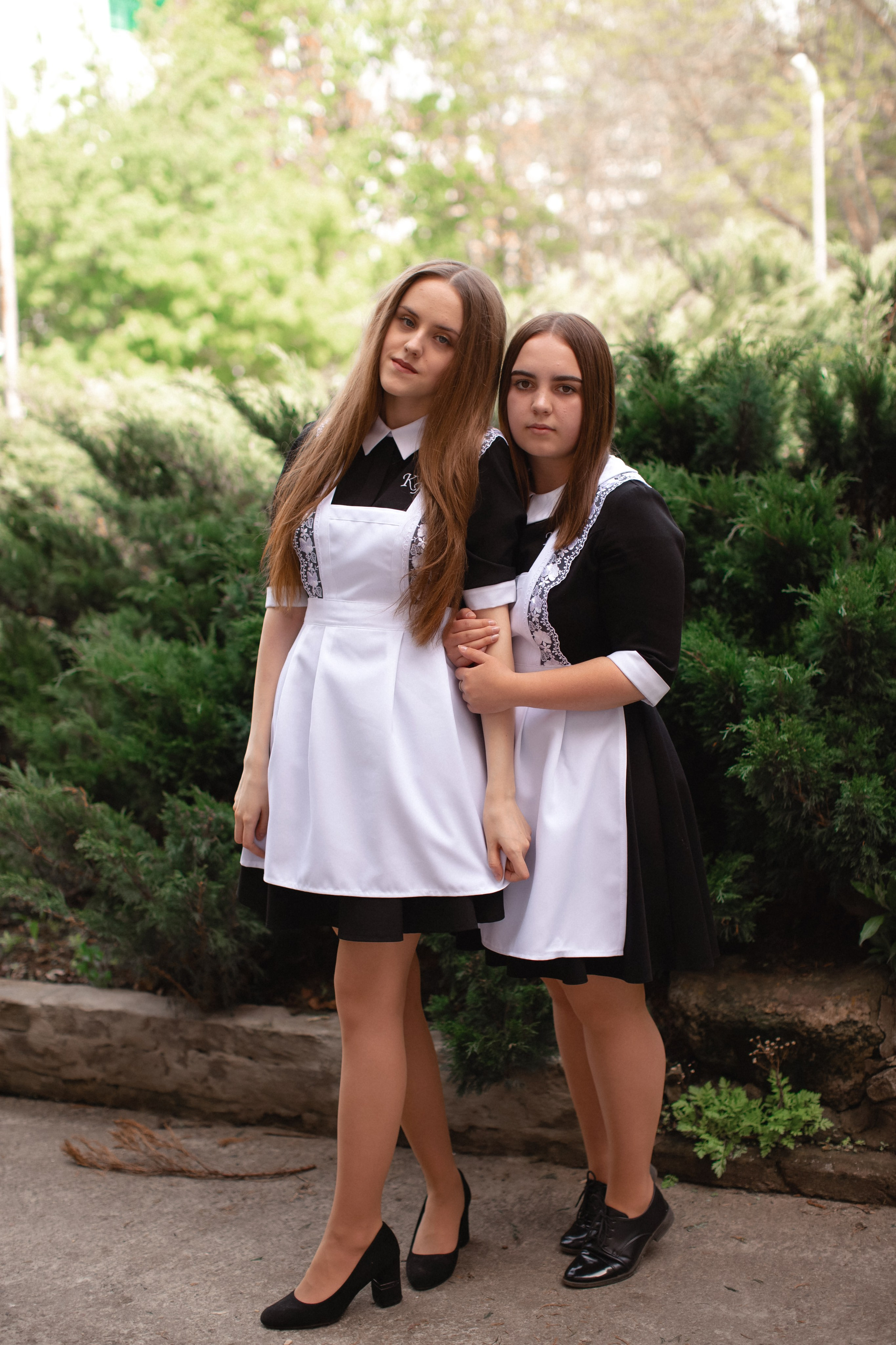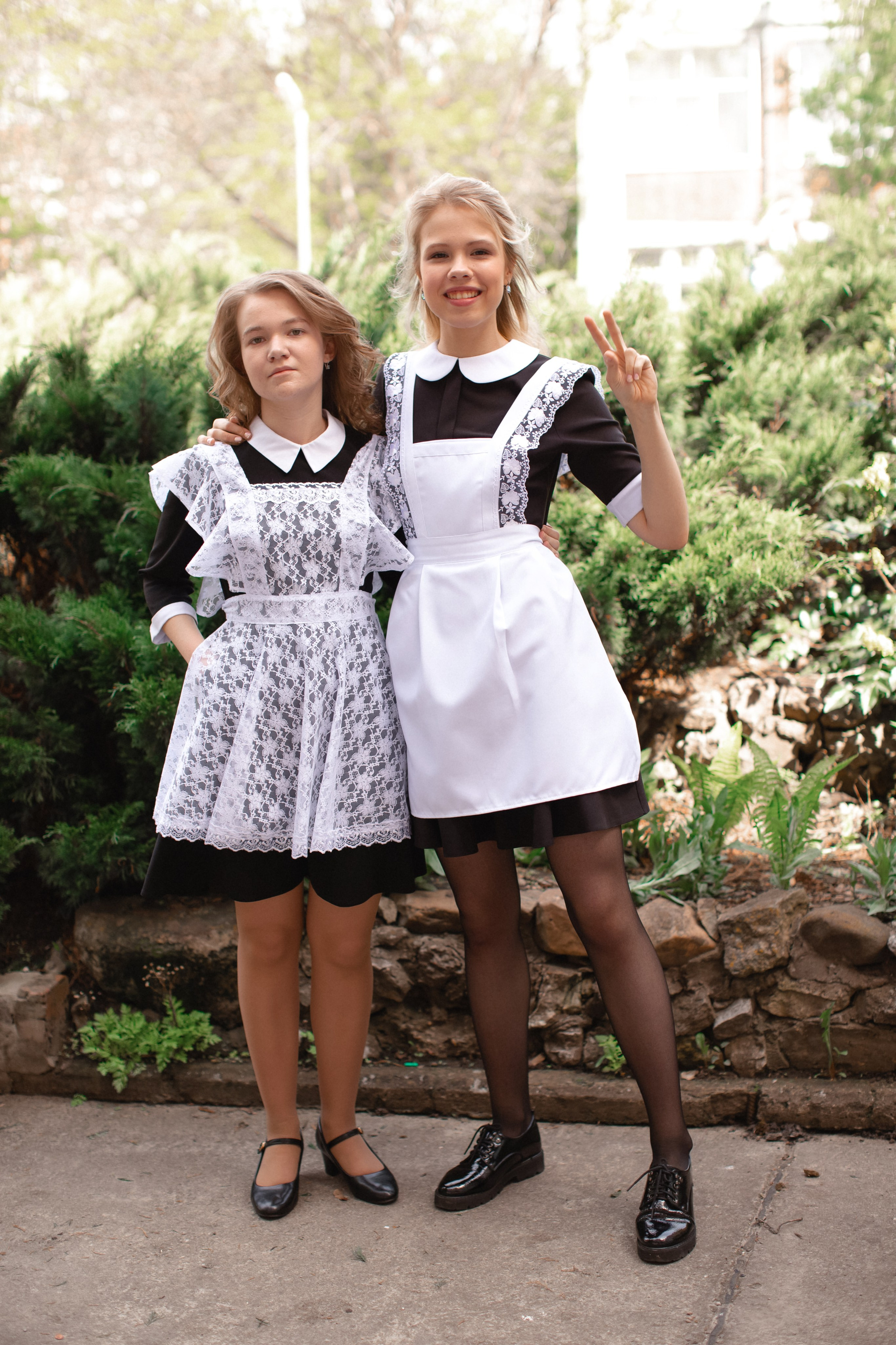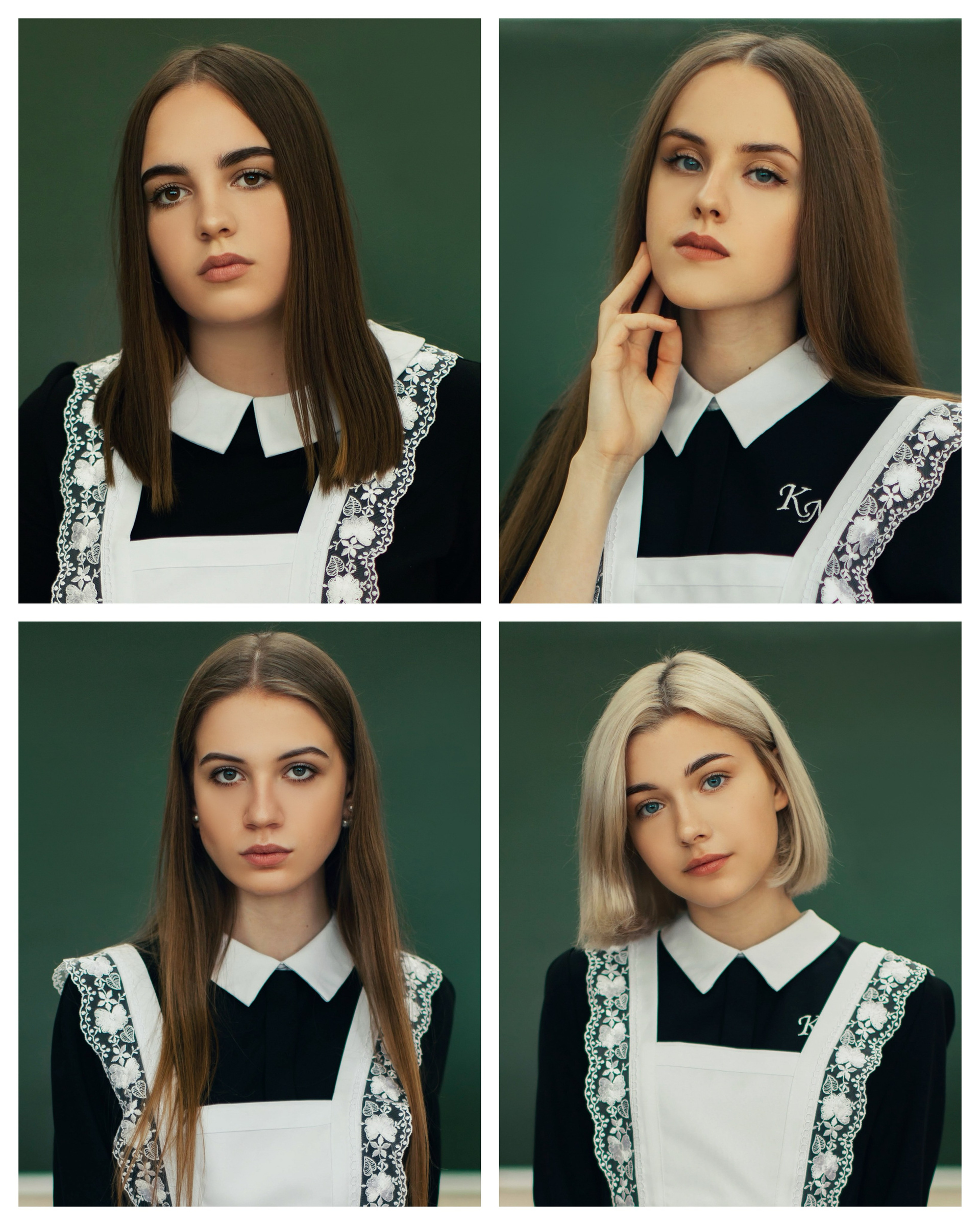 В школьной форме в школе / библиотеке / В свободной форме в парке / на стадионе