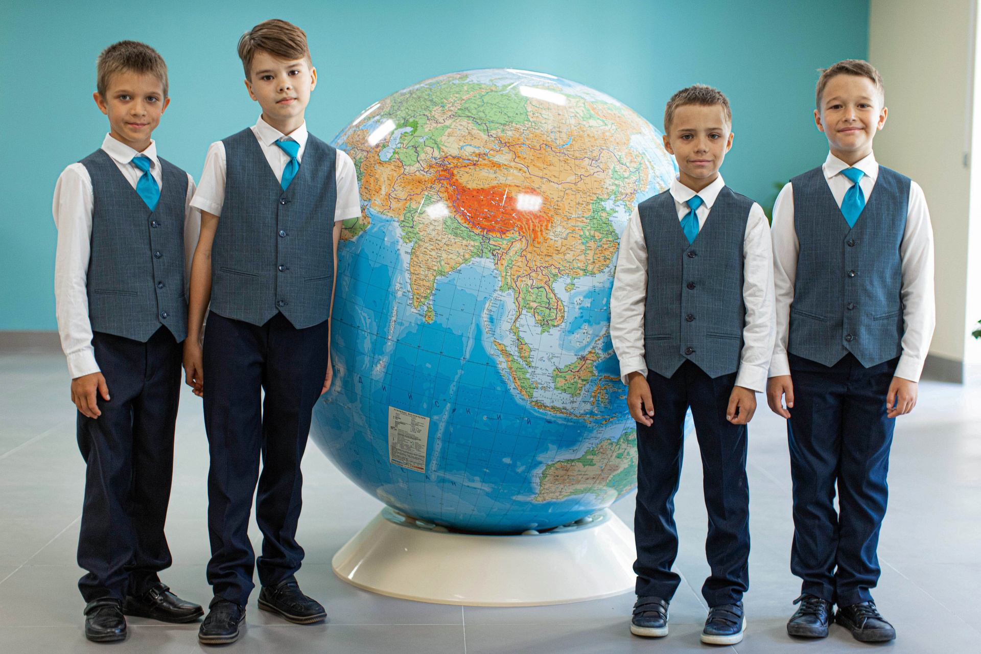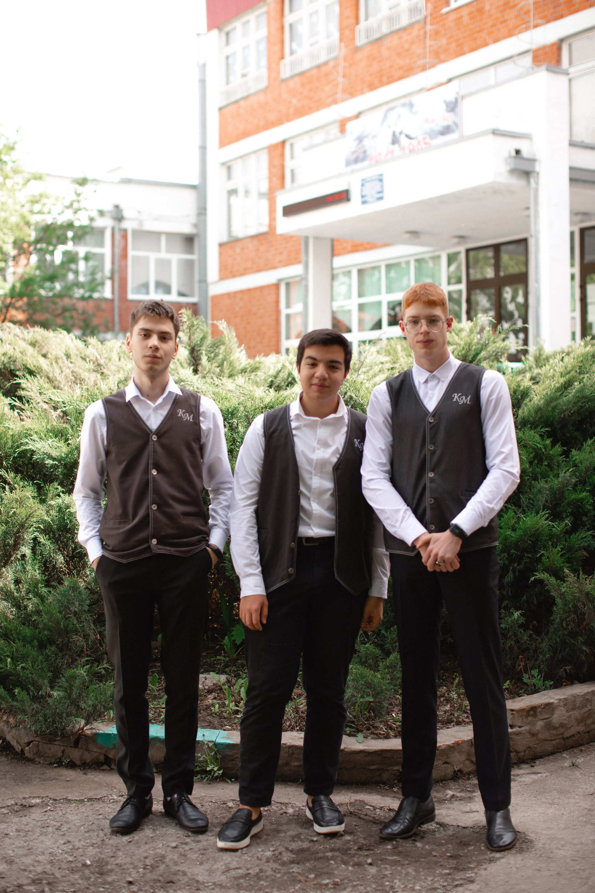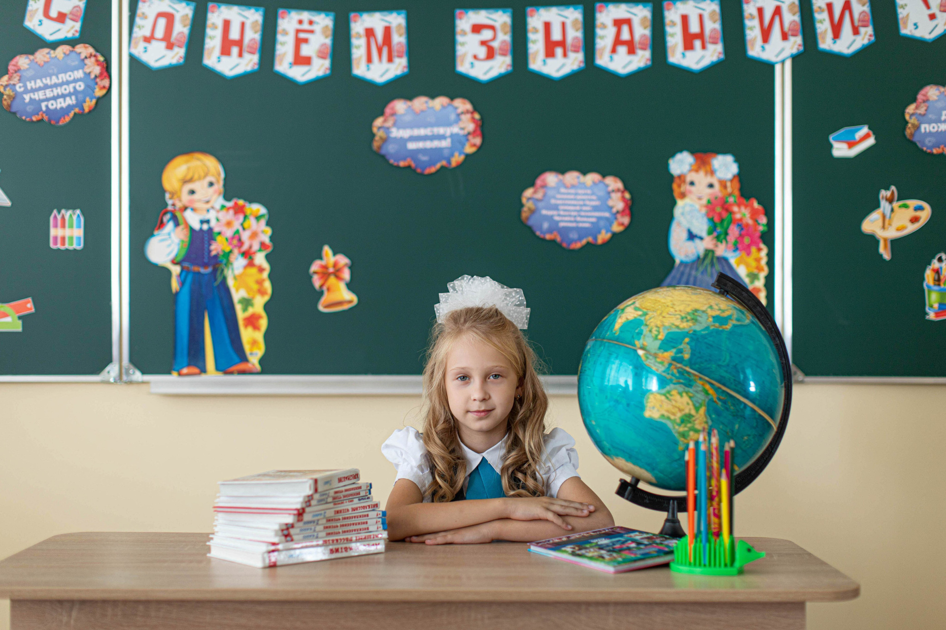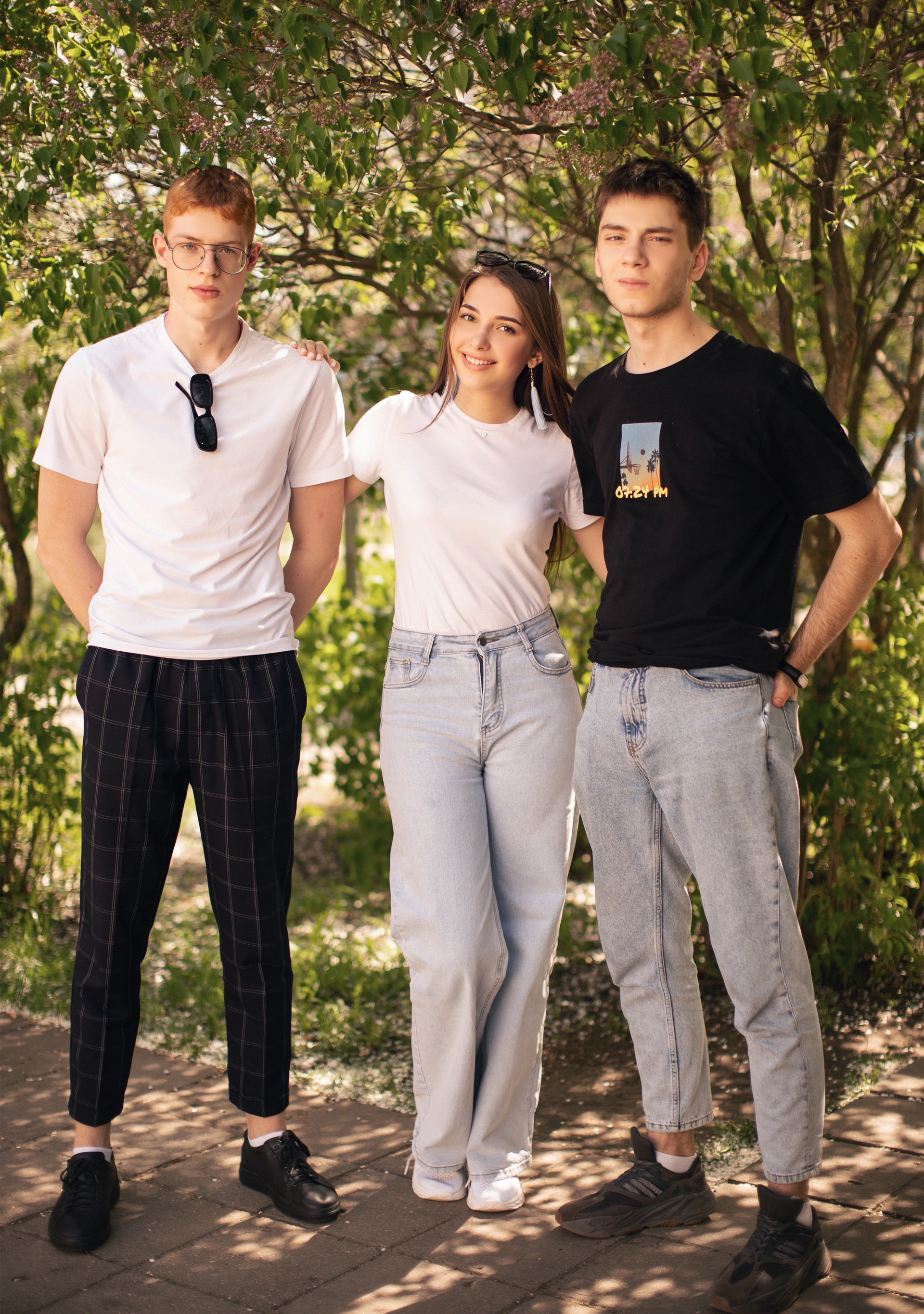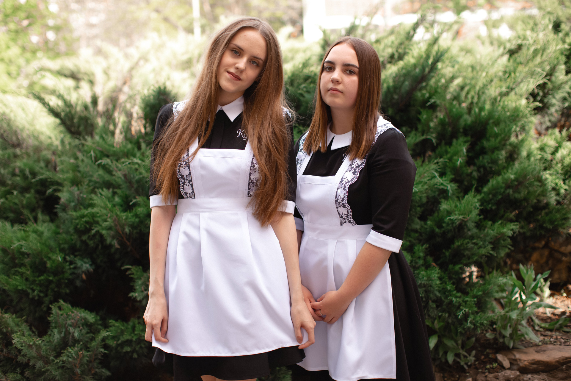 В школьной форме в школе / библиотеке / В свободной форме в парке / на стадионе