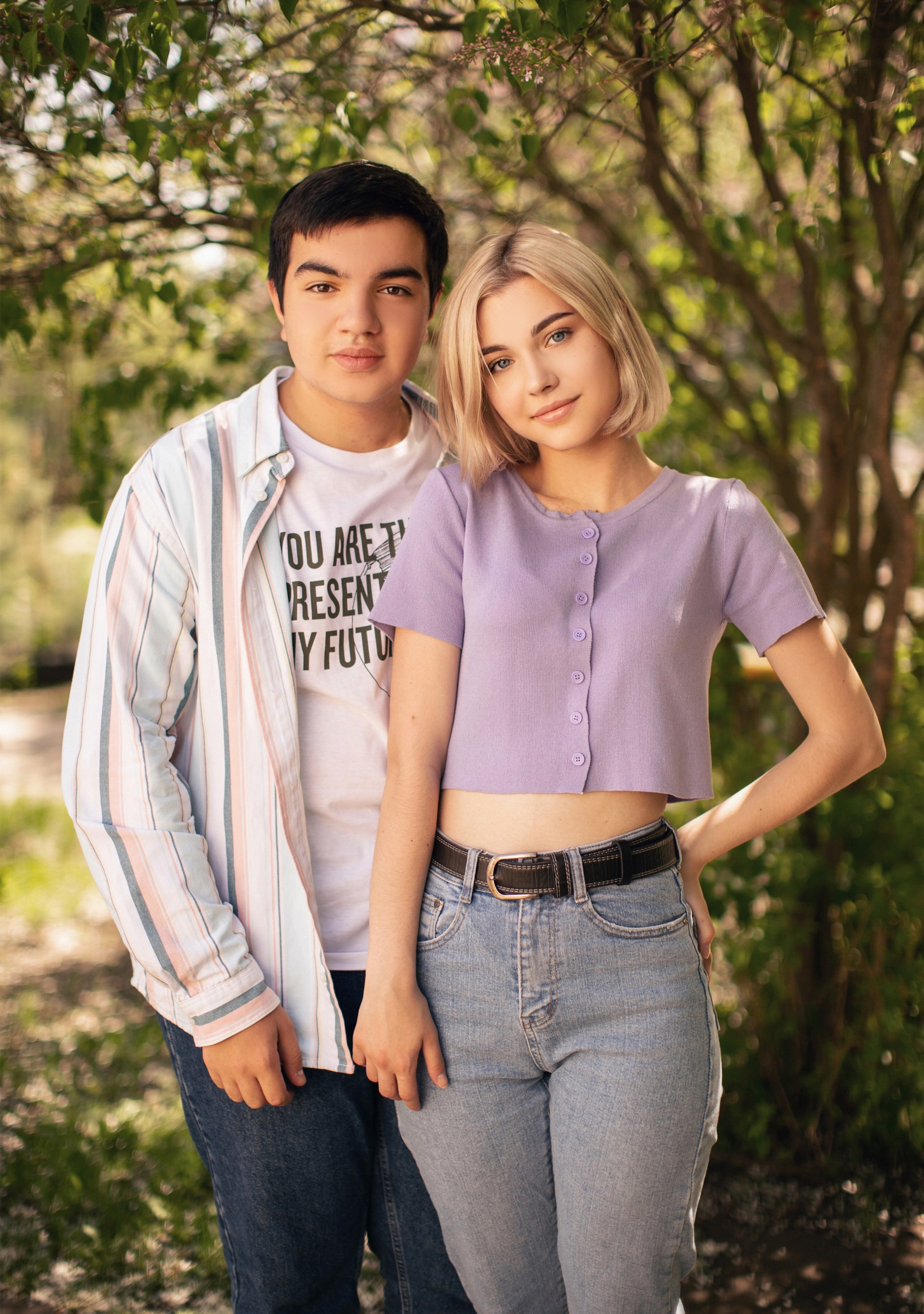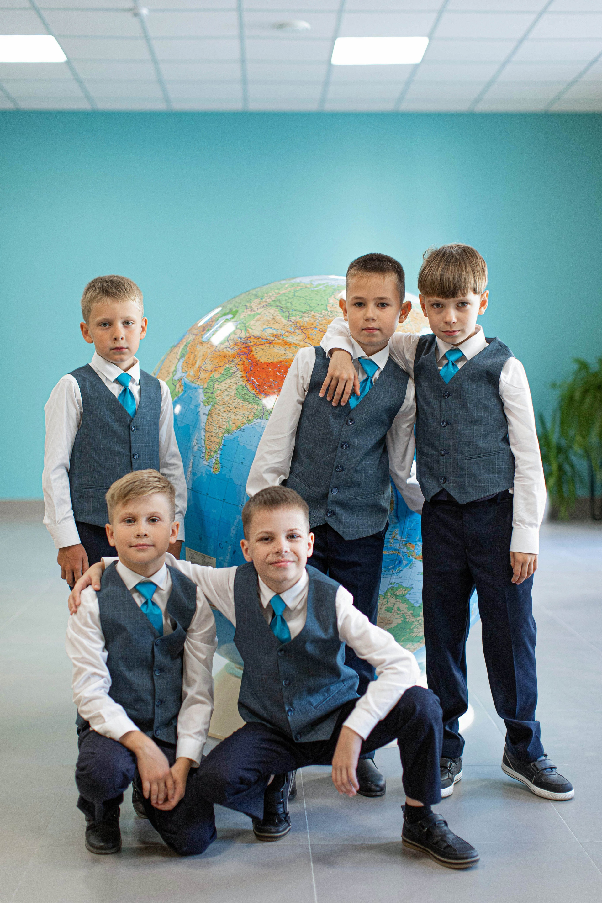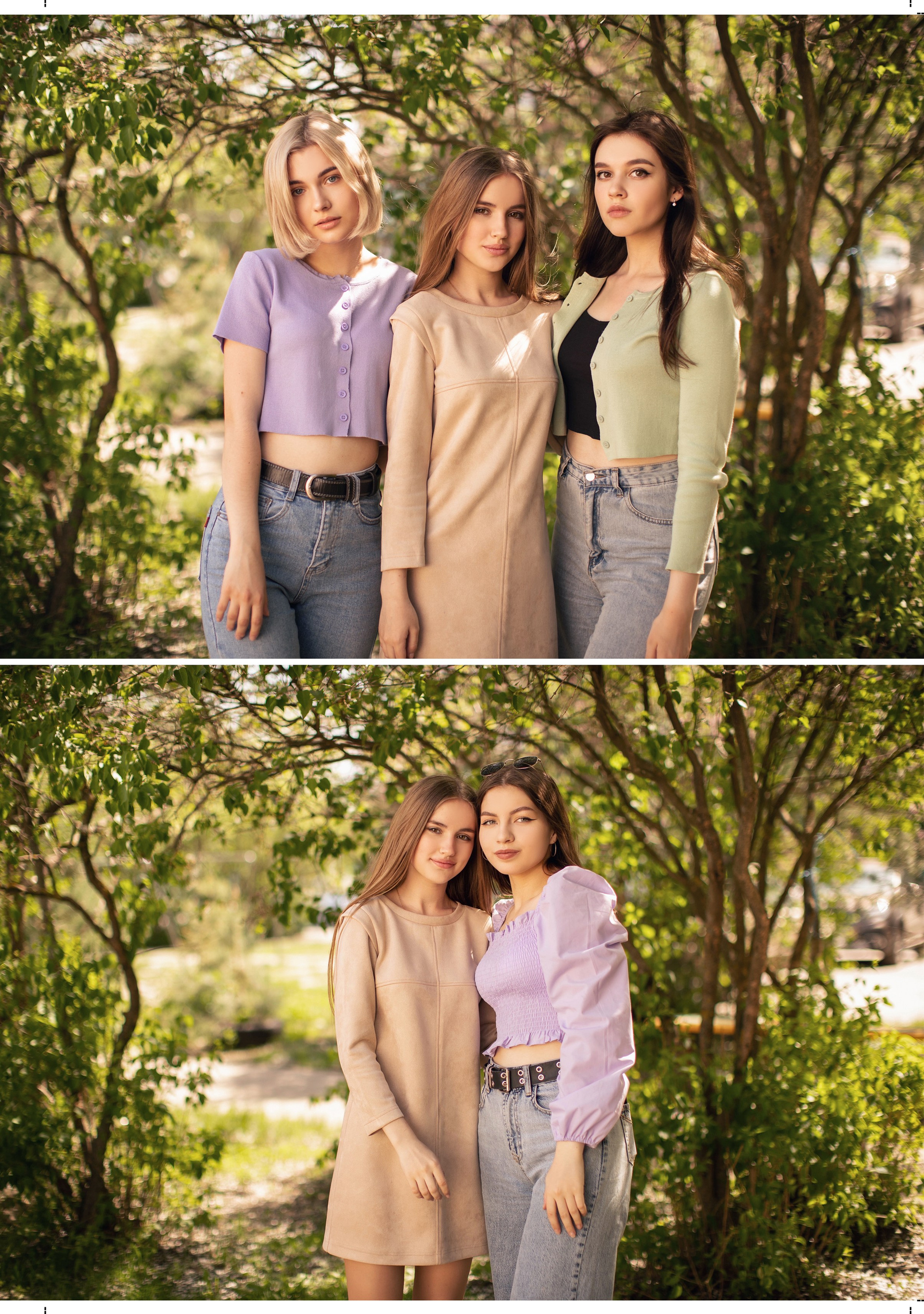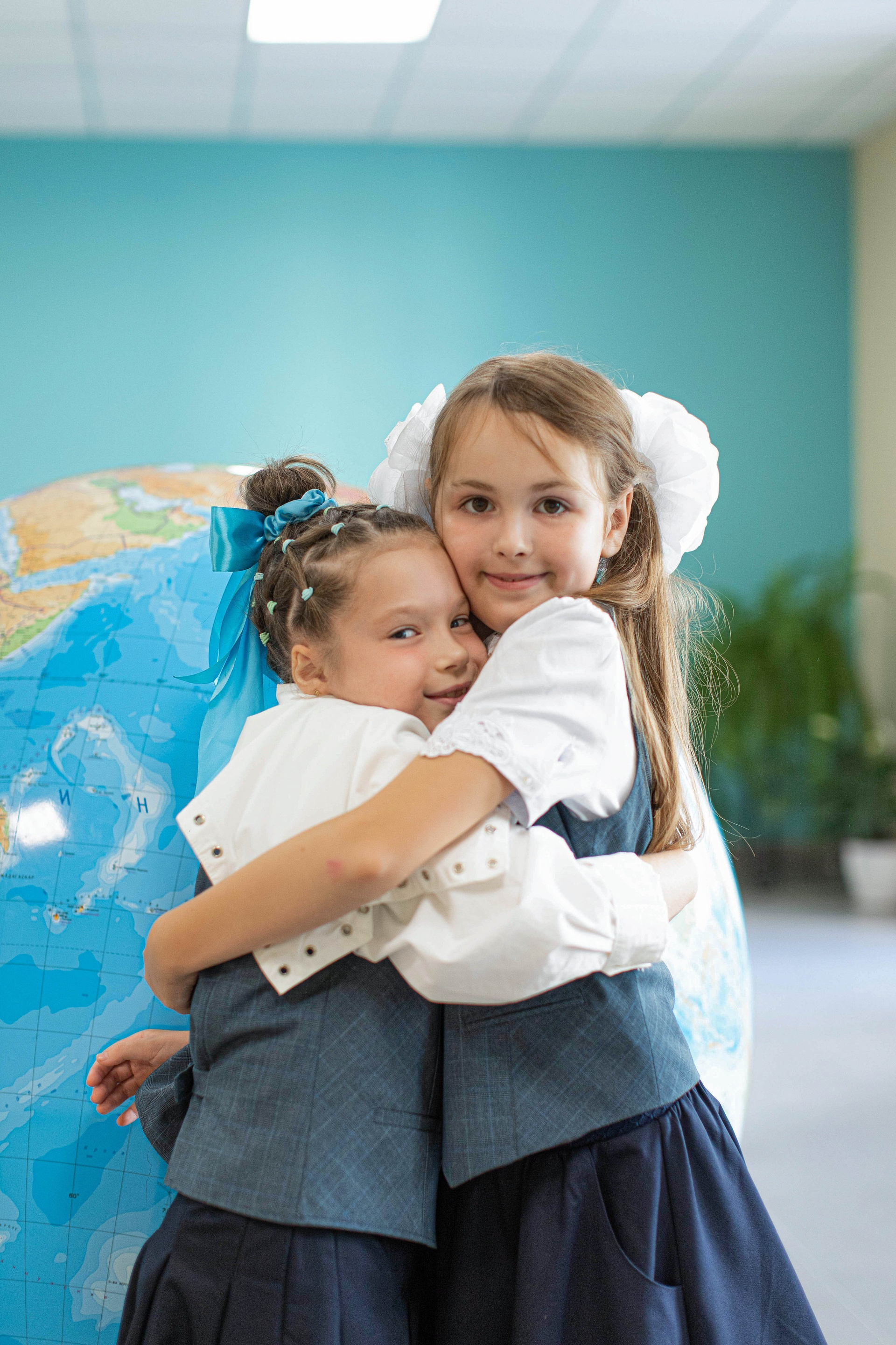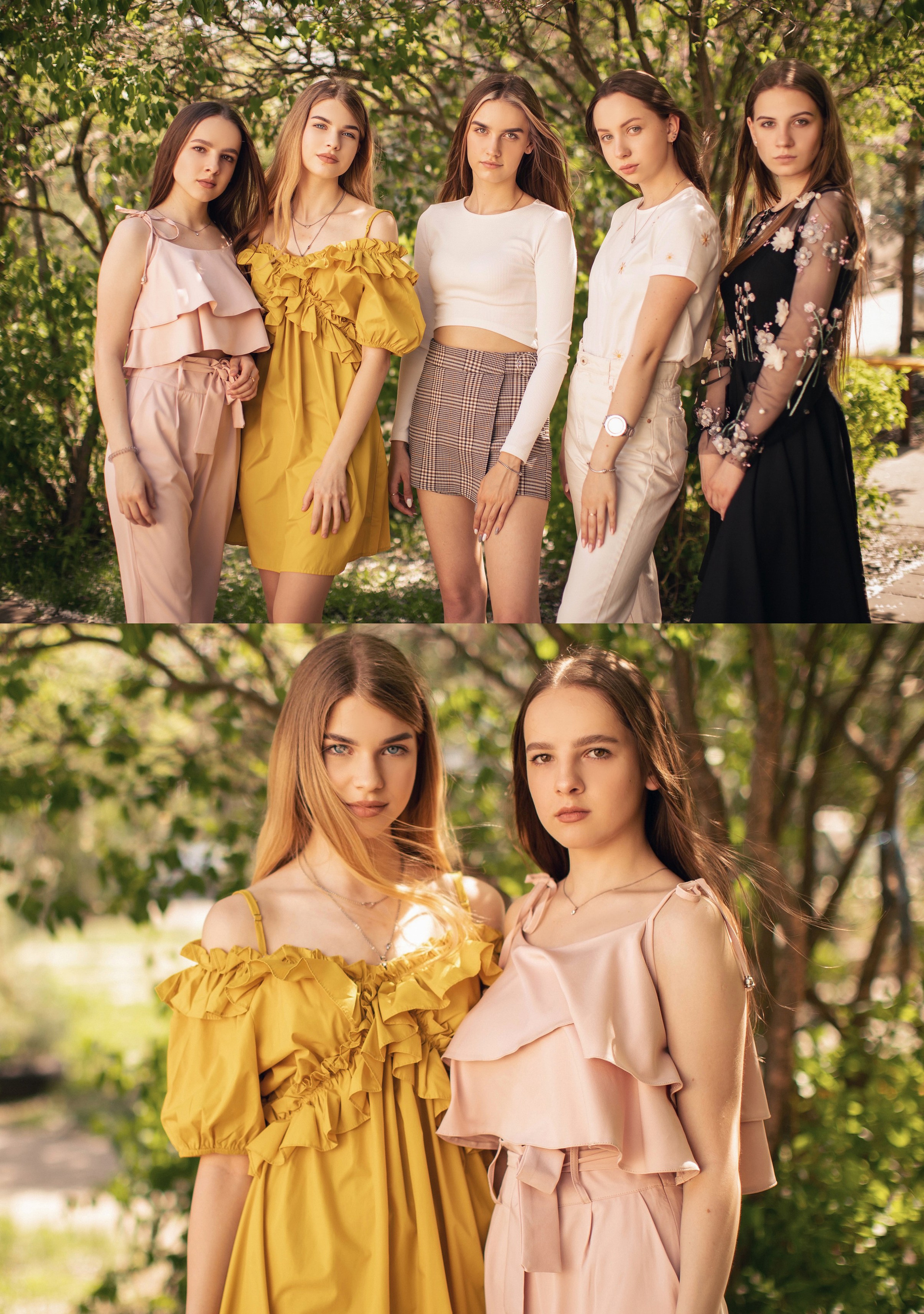 В школьной форме в школе / библиотеке / В свободной форме в парке / на стадионе